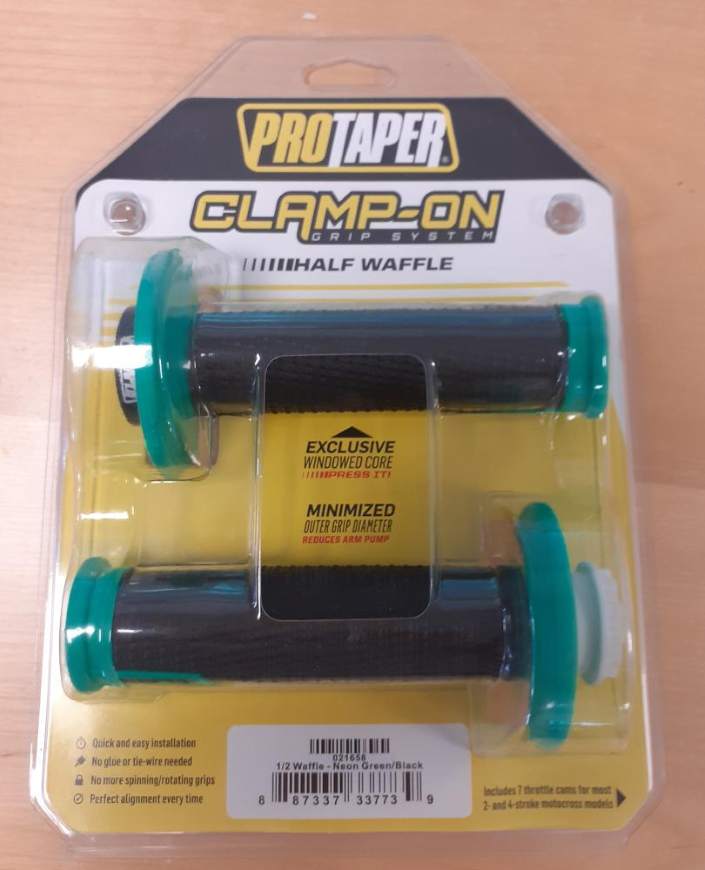 Protaper handtag clampon 1/2 waffle neon grön/svart.